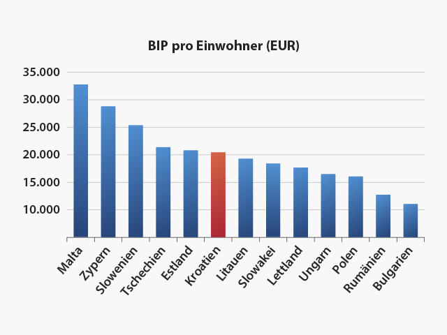 Gegen Ende Dezember 1991 wurde der kroatische Dinar als vorübergehende Währung und im Jahr 1994 die kroatische Kuna als neue Nationalwährung eingeführt. Ab Oktober 1993 begann Kroatien, Standby-Abkommen mit dem Internationalen Währungsfonds (IWF) abzuschließen, und von 1994 an erhielt Kroatien schon die ersten Kredite von der Weltbank und von der Europäischen Bank für Wiederaufbau und Entwicklung. Dadurch verbesserte sich die wirtschaftliche Lage, aber gleichzeitig führte dies zur weiteren Verschuldung. Nachdem die unmittelbar durch Kriegshandlungen verursachten Diffizilitäten überwunden wurden, trat Kroatien in eine Etappe des wachsenden Bruttoinlandsprodukts (BIP) ein. Im Jahr 2002 wurde mit 5,2% die höchste jährliche Wachstumsrate verzeichnet, im Jahr 2003 erreichte das BIP die Vorkriegswerte (24,8 Milliarden US-Dollar im Jahr 1990). Der BIP-Wachstumstrend setzte sich bis 2008 fort, als es zum Rückgang und danach zur Stagnation kam, die in erster Linie auf die weltweite Rezession zurückzuführen waren. Im Jahr 2015 begann sich die kroatische Wirtschaft von der Rezession zu erholen, mit kontinuierlichem Wirtschaftswachstum bzw. kontinuierlicher Steigerung des Bruttoinlandsprodukts.