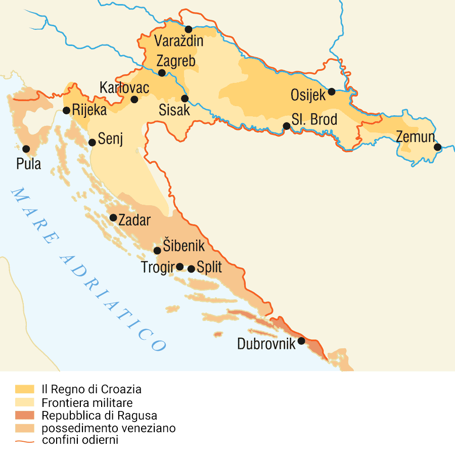 Durante il settecento la Croazia fu divisa tra la Monarchia Asburgica e la Repubblica di Venezia. Inoltre, la Croazia con la Slavonia, che faceva parte delle terre asburgiche, era divisa in Regno di Croazia, che apparteneva dal punto di vista amministrativo alla parte ungherese della monarchia, e il Confine militare, che era sotto l'amministrazione diretta di Vienna. L'area sotto il dominio veneziano era divisa nelle province della Dalmazia e dell'Istria.